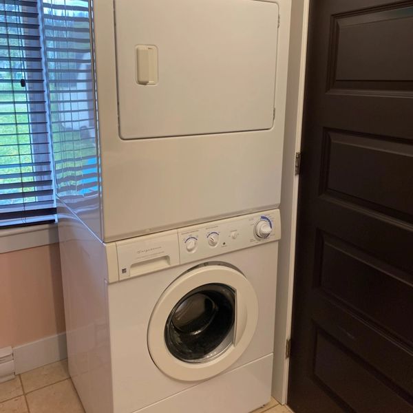 Full size side by side fridge/freezer, wall oven, cooktop, dishwasher, microwave, toaster oven, coffee maker, blender, pots, pans, dishes, silverware and more! Dining table with 6 chairs, plus 2 stools at the breakfast bar.